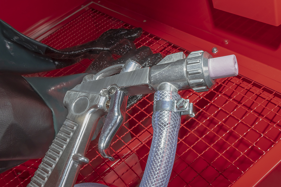 Пескоструйная камера подходит для обработки различных деталей и предназначена для снятия грунта, краски, ржавчины. Позволяет производить обработку изделий и инструментов без создания специального пространства и дополнительной защиты оператора. В верхней части располагается прозрачное стекло для обзора детали. Для работы необходимо подключитель изделие к системе подачи сжатого воздуха.