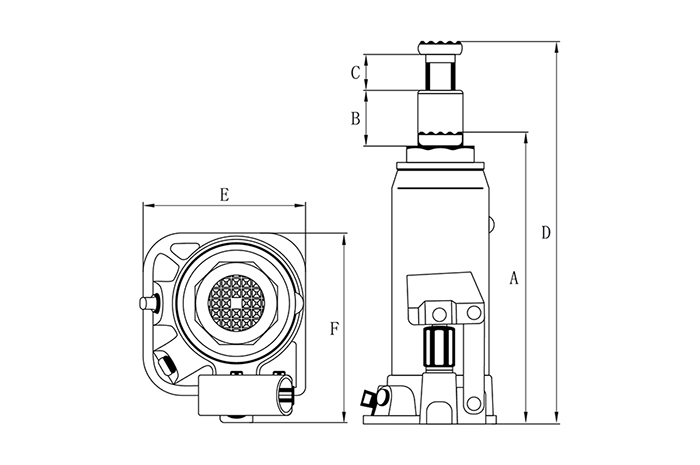 | Min высота подхвата, мм (А) | Ход штока, мм (B) | Длина регулирововчного винта, мм(С) | Max высота подхвата, мм(D) | Ширина основания, мм (E) | Длина основания, мм(F) |