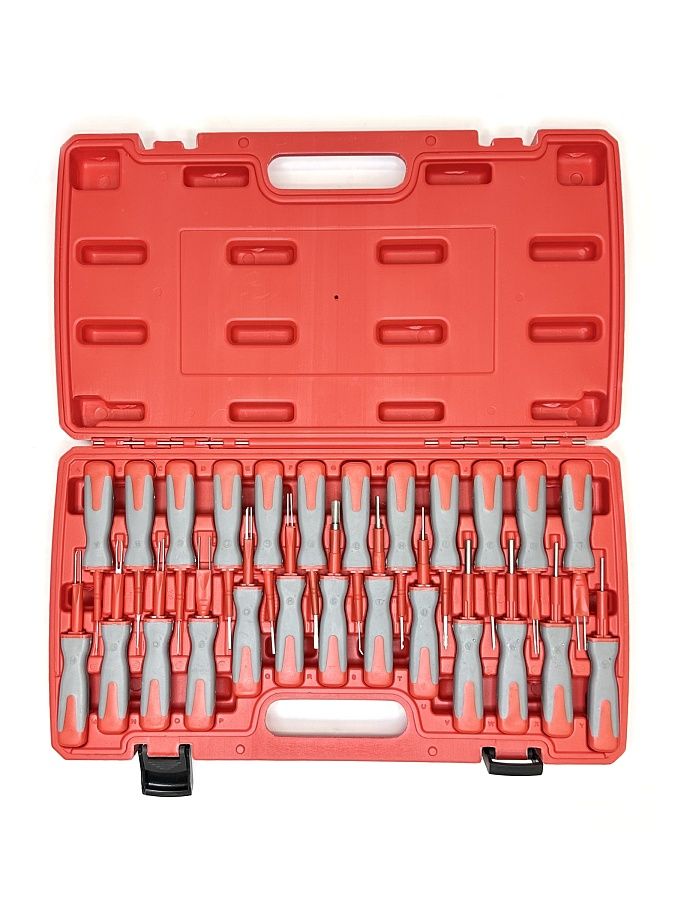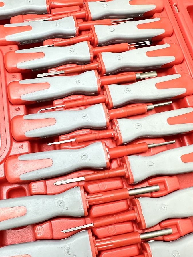 В комплект входит 23 приспособления для разъединения электрических разъемов. Подходят для большинства марок автомобилей: VW/Audi, Opel, Ford, Renault, BMW, Mercedes, Skoda, Seat, Saab, Porsche, Jaguar, Citroen, Fiat, Honda, Mazda, Chrysler, Toyota, Mitsubishi.
