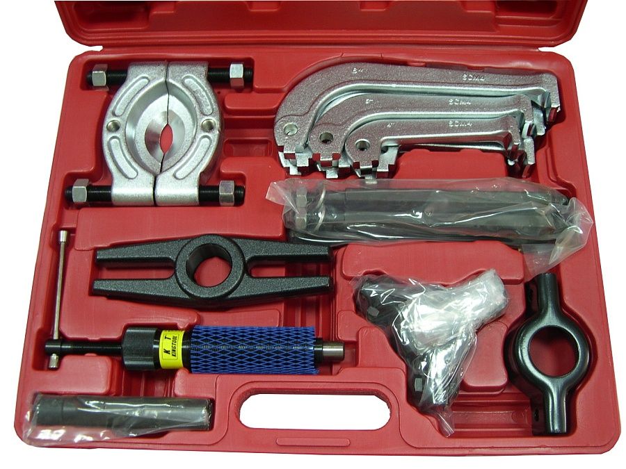 Набор «Съемник многофункциональный гидравлический» состоит из различных съемников, сепараторов для работы с 10 тонным гидравлическим цилиндром.  Набор подходит для извлечения различного рода подшипников, шкивов, шестеренок и других деталей автомобиля. Благодаря прочной конструкции и большому усилию гидравлического цилиндра, съемник можно использовать для обслуживания грузовых машин, сельскохозяйственной и строительной техники, а так же в промышленности. При необходимости, можно использовать удлинительные штанги для сепараторного съёмника и удлинительные штанги для центрального штока цилиндра.