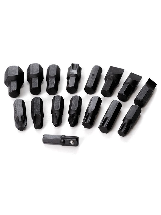 Инструменты из данного набора отличаются износостойкостью: биты изготовлены из высококачественной инструментальной стали S2, а остальные предметы из прочной хромованадиевой стали.