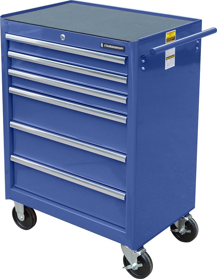 Тележка инструментальная для автосервиса с 6 ящиками, синего цвета