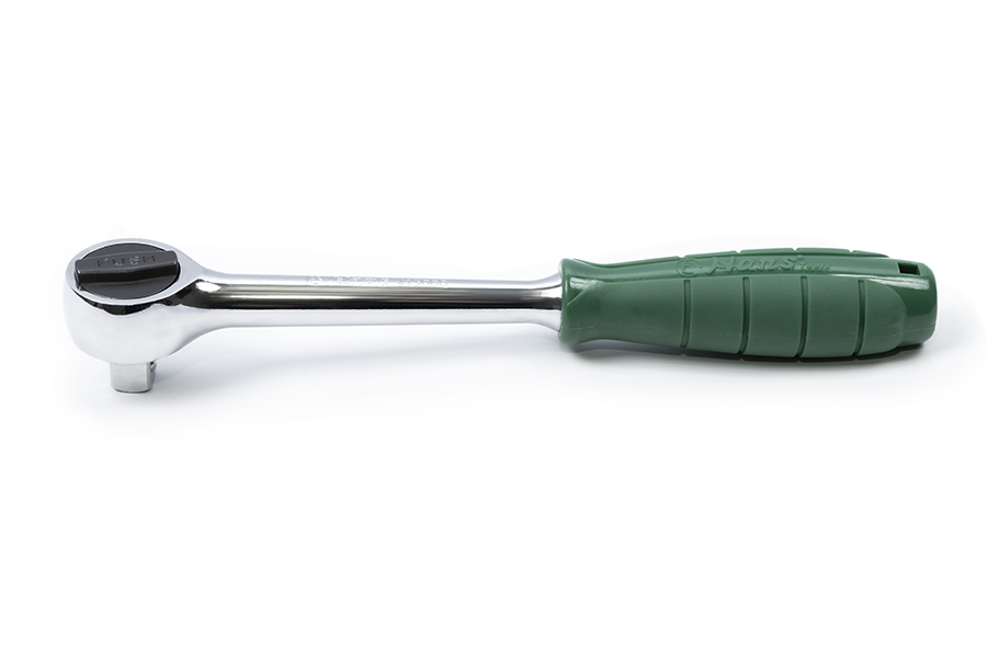 Трещотка с храповым механизмом и круглой головкой отличается простотой и удобством в применении. Трещоточный механизм ключа позволит работать им, не отрывая от закручиваемой детали. Резиновая накладка на ручке не позволяет инструменту скользить. Имеет кнопку быстрого сброса.
